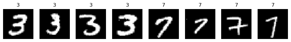 The figure below shows some samples of the digits 3 and 7 from the training set.